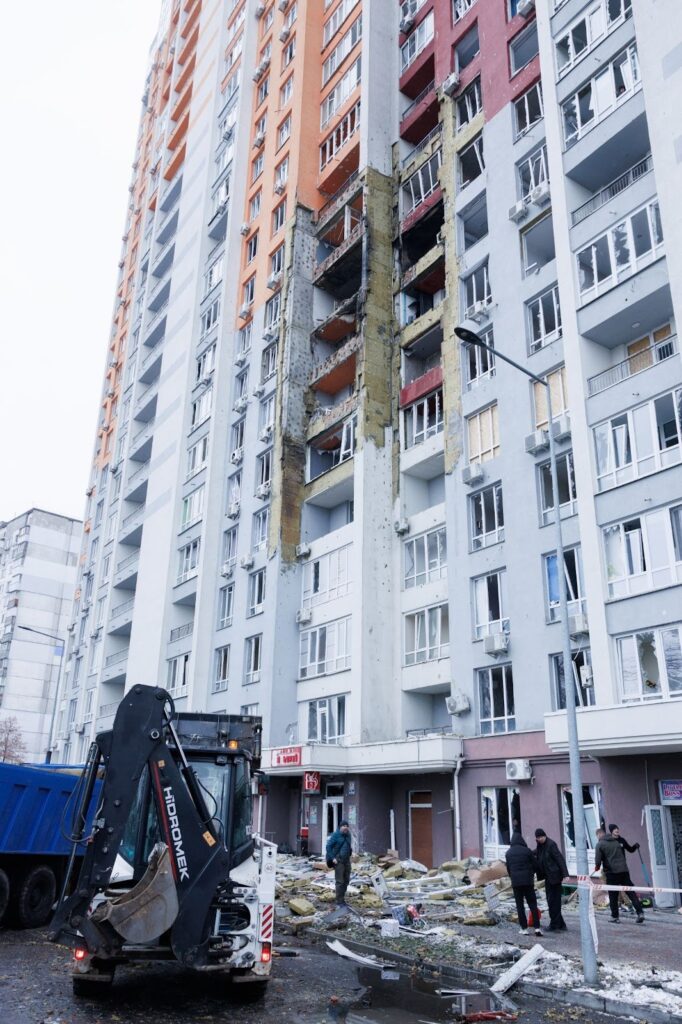 We had an all-clear only that Saturday evening, but in the afternoon, I went with friends to survey some of the damage to the apartment buildings. I helped shovel rubble with a group of Ukrainian men, while air raid alerts were still sounding. We moved our location a few times to avoid drones, which were circling Kyiv all day. By all accounts, for a war with many dozens of bad days, December 27 stood out because of the concentration of firepower at Kyiv.